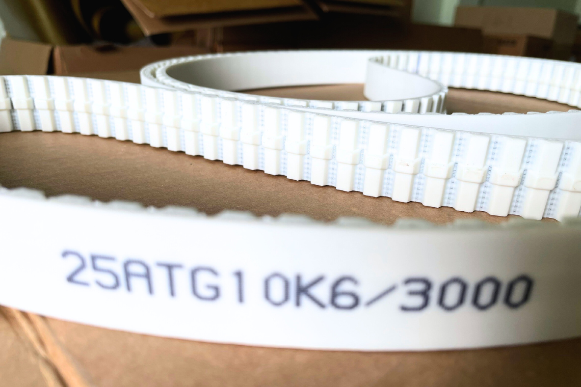 2. สายพาน PU แบบฟันเฟือง (PU Timing Belt) : มีฟันบนสายพานเพื่อให้การขับเคลื่อนแม่นยำและไม่ลื่นไถล เหมาะสำหรับงานที่ต้องการความแม่นยำสูง เช่น เครื่องจักรที่มีการเคลื่อนไหวอย่างต่อเนื่อง