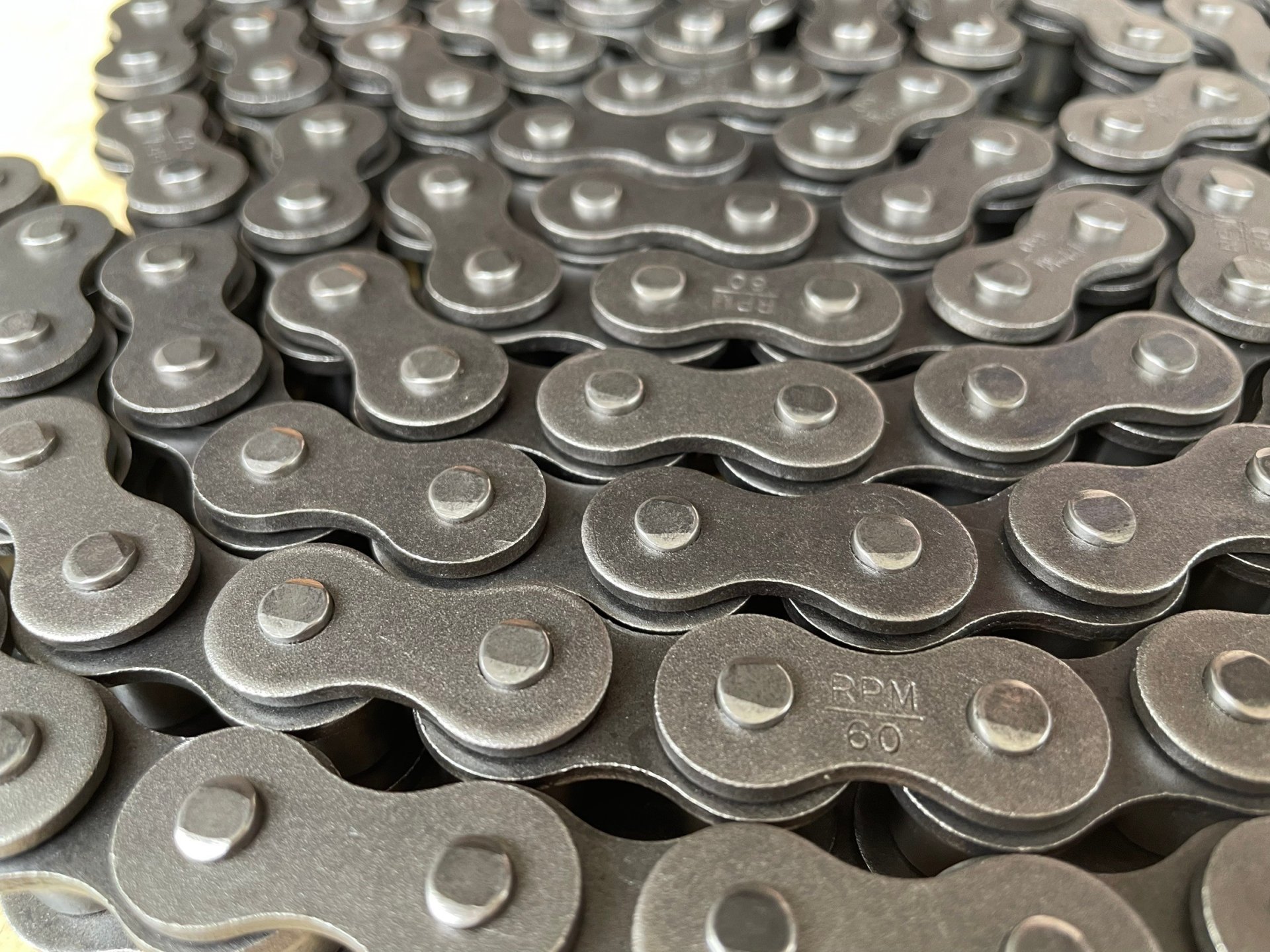 1.3 โซ่ลำเลียงแบบลูกกลิ้ง (Roller Conveyor Chain): มีลูกกลิ้งที่ช่วยให้โซ่เลื่อนได้ง่าย ลดการเสียดทาน มักใช้ในสายการผลิต